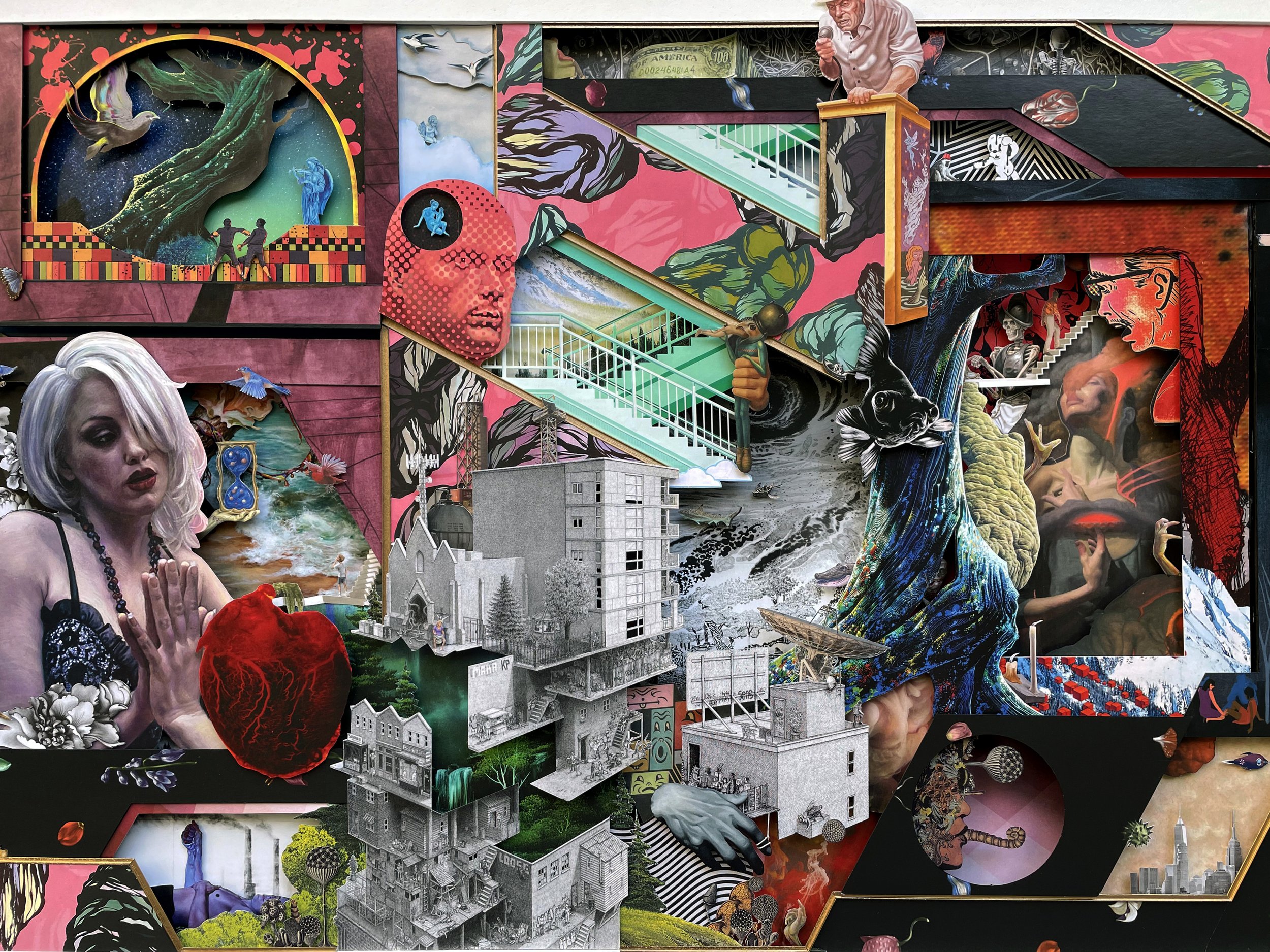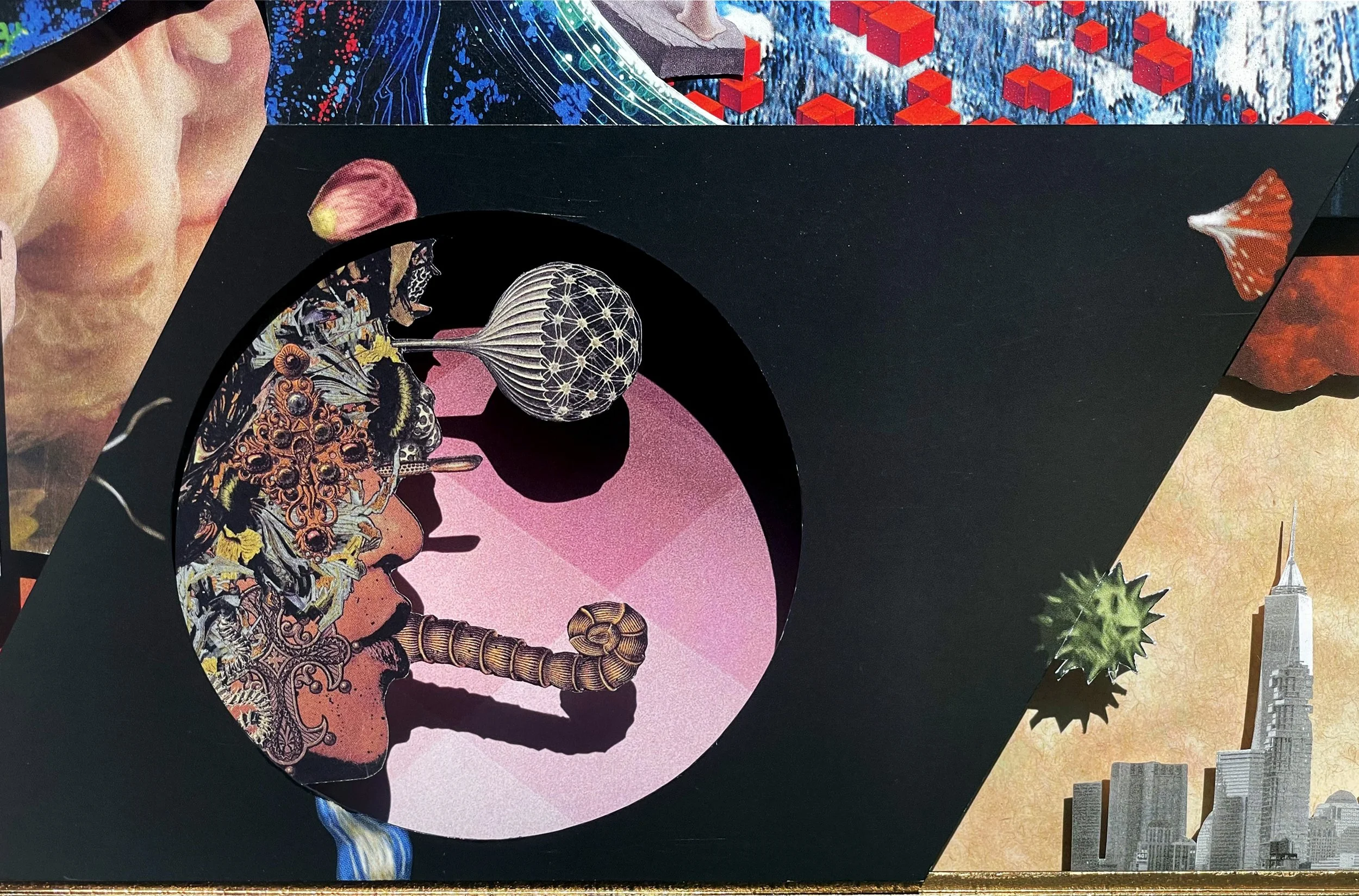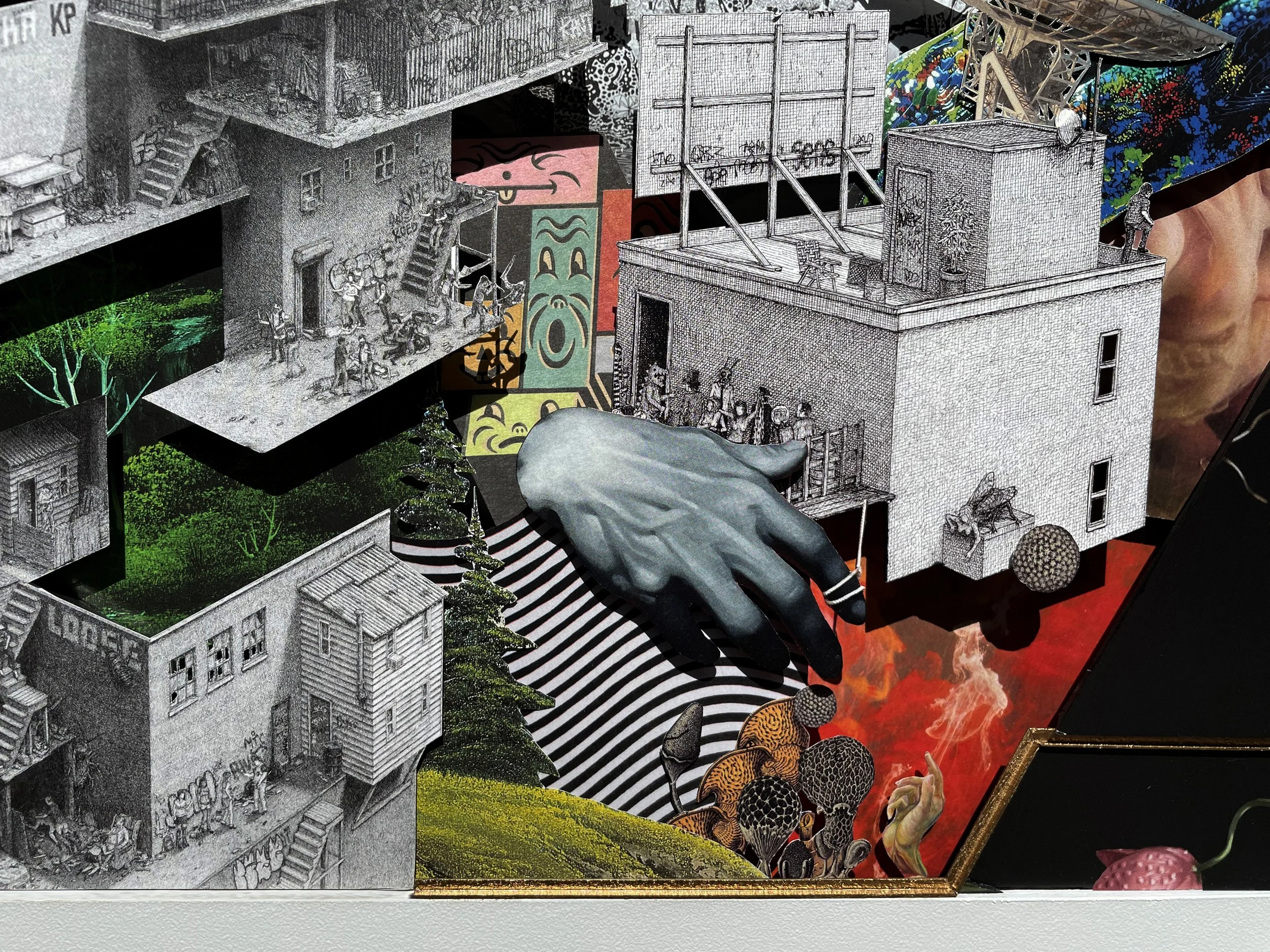 SHABNAM & THE HELLMAN 3-dimensional physical collage modelYear: 202242 x 32 inchesInquireThe Hive Gallery — “Rising Stars of LA” — 2022 Back to Art